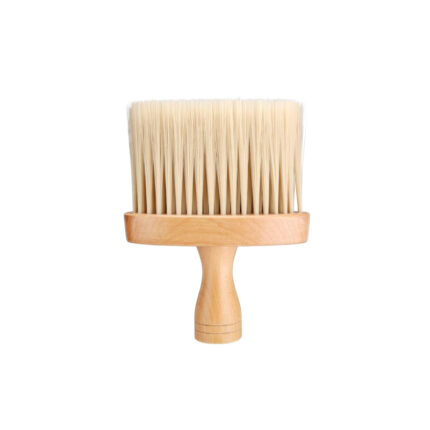 The Wooden Neck Brush by GBI has a solid wooden handle with synthetic bristles that has a more traditional barbershop