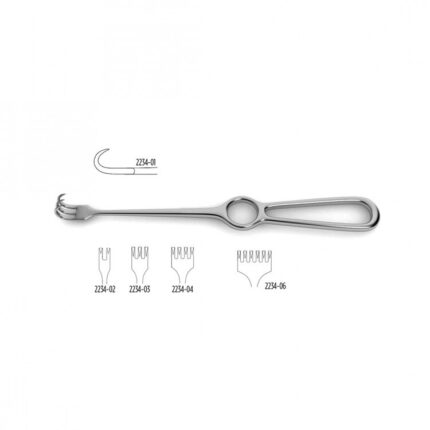 Volkmann Retractor is a standard pattern, handheld instrument with a fenestrated handle. It is 8 ¾" in overall length and is available with a variety of curved prongs with sharp or blunt tips. The ideal purpose of this retractor is to divide, or retract, tissue in general surgeries.