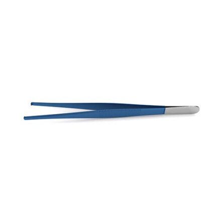 Tissue Non-conductive Forceps are handcrafted with a smooth and durable, non-conductive nylon coating for electrosurgical procedures. Fully autoclavable, these forceps are available with either coated or exposed serrated, 1x2 teeth tips. Both an 8" and 10" model is available with a serrated handle. Insulated forceps feature a smooth, durable, non-conductive nylon coating for LEEP, LLETZ and other electrosurgical procedures. The blue nylon resists abrasion and provides excellent insulation. These instruments are fully autoclavable, and can come in patterns with either exposed or coated tips to accommodate a range of clinical needs. Most forceps, including ones not shown as insulated here, can be insulated for use in electrosurgical cases – please contact us for more information.