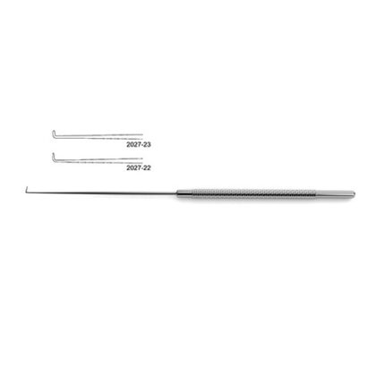9" (23.0 cm)Â Adson Aneurysm Needle is an instrument crafted for use in a variety of different procedures. Specifically it is long thin, probe type instrument that features a slight curvature at the end. Additionally it features a blunt-point with an eye that allows for ligatures to be passed behind aneuryms or vessels in surgery. The specialize design of this needle prevents tearing or trauma to the aneurysm as the needle is passed by it to prevent any further bleeding.