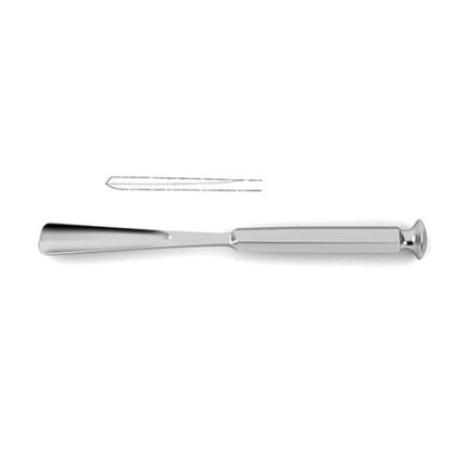 octagonal handle, 8" (20.0 cm)Â Cherry Osteotome is designed for use in cutting and preparation of bone in neurosurgical procedures. This osteotome has a long, slender profile as well as a uniquely designed octagonal handle which allows it to be gripped and maneuvered easily. Additionally this osteotome is available in five widths 3.0, 4.0, 5.0, 6.0 and 7.0 mm and in either a straight or curved profile making it suitable for a wide variety of patient needs and surgical approaches.