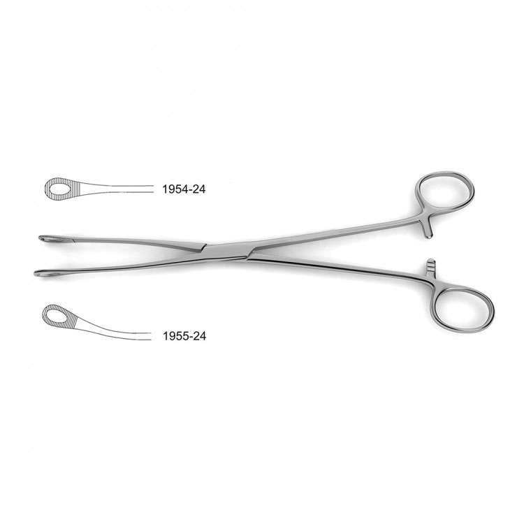 standard pattern of the Allis Tissue Forceps are intended for the use of firmly grabbing or holding body tissue during surgery. This pattern includes a ratchet ring-handle with a selection of different sizes and types of teeth to accommodate various medical procedures. These teeth curve to the inside and may cause less harm to the tissue because of decreased general pressure applied to the area.