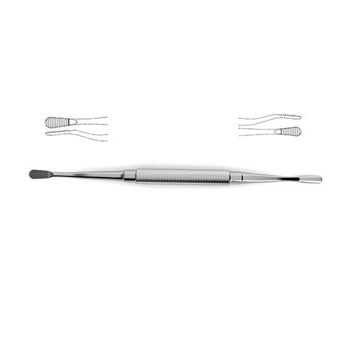 double-ended, plain serrations, 3.0 mm & 4.0 mm wide, 7" (17.5 cm)Â Bone File #64 is a double ended instrument that can be used in a variety of surgical procedures. This file features plain serrations and can be used to smooth out sharp edges on bone during surgery. In surgeries where such delicate tissue is involved such as nerves, vessels or even brain tissue it is imperative to keep sharp surfaces from causing tear injuries. Additionally this instrument is comprised of premium German operating-room grade stainless steel.