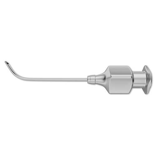 curved, 19-gauge, overall length excluding hub 13/16″ (2.1 cm) Â Bracken Anterior Chamber Cannula is a frequently used tool in cataract extraction procedures. The small gauge cannula is nimble enough to fit into a small limbal incision accessing the anterior chamber. It may be used to aspirate fluid within the anterior chamber exposing the lens capsule. The curved nature of the shaft assures minimal surgical obstruction.