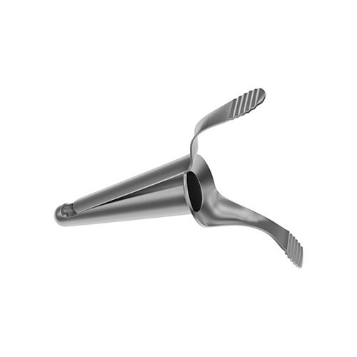 Pratt Rectal Speculum features two blades that form a tapering hollow cylinder. The spring handles allow the instrument to be opened to the desired amount and the screw mechanism locks it in place. The wider external portion allows the operator to examine the lower rectum and anus.