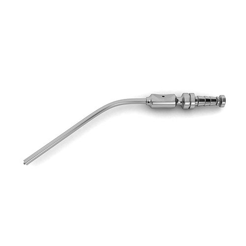 Frazier Suction Tube has an angled tube and is available in a variety of different sizes and widths depending on the operation. This tube has a finger cut-off on a 4″ working length and performs similar to a pump with a suction force. The purpose of this suction force is to be used in general operations in which materials or fluid, typically blood, need to be removed to provide a cleaner working area.