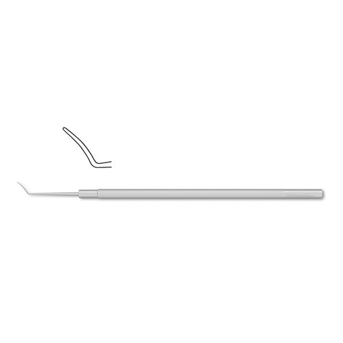 semi-sharp tip, 0.5 mm, 4-1/2″ (11.4 cm)Â Elschnig Cyclodialysis Spatula is a commonly used tool in the treatment of glaucoma. The spatula is used in the procedure to dissociate the ciliary body from the sclera. Further, the tool may be used to enlarge an incision from a sclerectomy if desired. The spatula features a slender 10mm blade for ease of use.