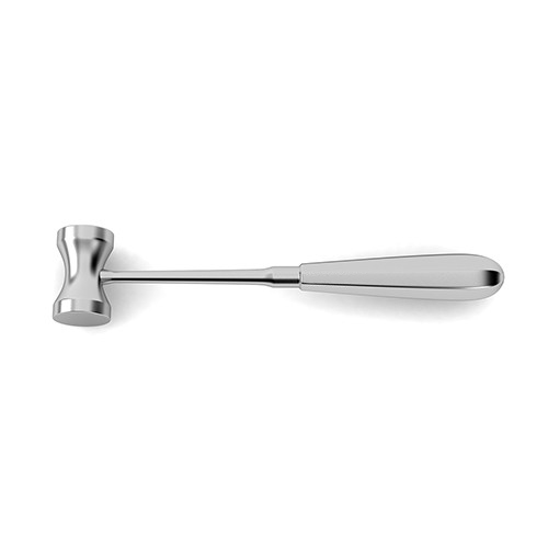 6-1/2 oz., solid, 1″ diameter head, 8-1/4″ (21.0 cm Hajek Bone Mallet is a uniquely crafted instrument for use in a wide variety of neurosurgical procedures. This mallet features a solid dumbbell style head one inch in diameter that is narrower in the center and flares out on either end. Additionally the slim neck and rounded handle making this mallet easy to handle and well suited for delivering little bursts of force to drive a chisel down the center of a bone to split it or to chip away at particular portions of bone.