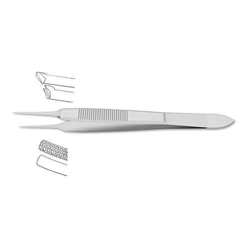 wide handle, bayonet shape, 6.0 mm tying platform, 0.3 mm teeth, 4-1/8" (10.5 cm)Â Castroviejo Suturing Forceps are a multipurpose tool for a variety of ophthalmologic procedures. The delicate teeth are designed for the handling of fine tissue, such as corneal tissue during a keratoplasty. The forceps are available with a tying platform, designed to grasp both the tissue and suturing equipment without changing instruments. The bayonet style is ideal for difficult to reach areas and minimizes surgical obstruction during the procedure.