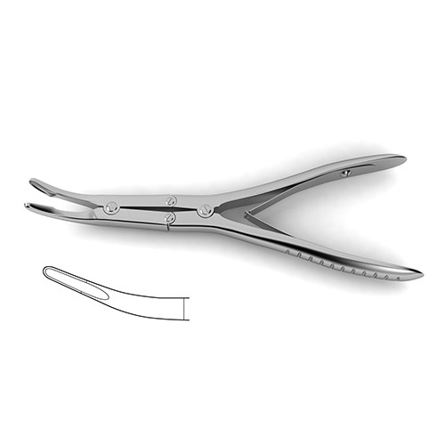 straight jaws on curved handles, jaws 3.0 mm wide, 7-1/2" (19.0 cm)Jeurs-Lempert Ronguer is a multiple purpose instrument that can be used in a number of different surgical procedures in which it is necessary to handle or move bone in some way. These rongeurs feature curved spring handles that allows this instrument to have the necessary contour for use in the body. Additionally the straight jaws allow for them to reach deeply into particular areas where bones are located. This instrument can be used gently to handle bone and with more force and pressure for cutting and reshaping of bone or bony tissue areas in a number of orthopedic surgeries.