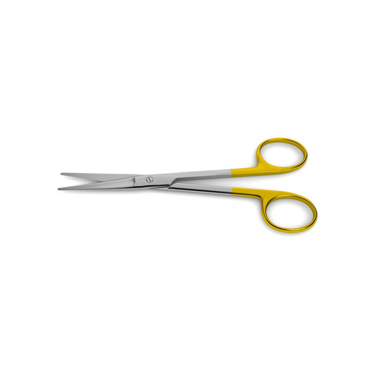Mayo-Carroll Scissors are handcrafted with tungsten carbide inlays to increase durability and provide the sharpest cutting edge. This 9″ scissor has a beveled blade and is available straight tipped for superficial dissections, curved for deeper dissections and as a curved with micro serrated edges to allow for the most delicate dissection. These can also be used as heavy duty general purpose scissors with serrated blades, and are ideal for cases such as cutting breast tissue and muscles in breast reconstruction procedures. Scissors combine the performance and precision of supercut with the durability of tungsten carbide cutting edges. These scissors: 1) feature tungsten carbide inlays on both blades for increased durability, sharper cutting edges and enhanced service life; 2) have one standard blade and one with micro-serrations; 3) feature inlays that are soldered onto the blades in a vacuum oven, not welded, resulting in a harder and more durable inlay than those welded on in a traditional process; and 4) feature gold-plated handles with stripes.