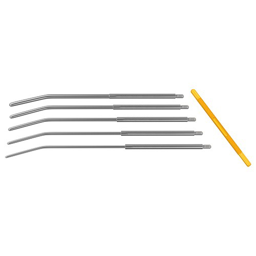 set of 6, including handle, sizes 1.0 mm to 3.0 mm  Mini Cervical Dilator Set features dilators of various width sizes for various cases. These dilators are designed for patients with a stenotic os. The rounded dilator tips prevent puncture of the uterine wall. The set is available with a universal handle that is able to hold all of the different tip sizes in the set. Please note that website images are often representative of the product family and may not conform to the exact specifications or features of the item you select. The final specifications will match the description of the specific catalog item you select.