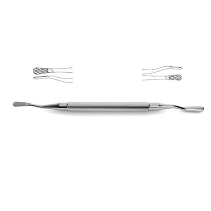double ended, backwards cutting, 6-3/4" (17.1 cm)Â Nail and Bone Rasp is ideal for a number of different neurosurgical orthopedic type surgeries. This rasp is double ended making it a two in one and can quickly switch between thw two heads. It has the ability to be backwards cutting. This instrument features serrations that allow either end to be used to whittle down or smooth roughened surfaces. In craniotomies or spinal surgeries such jagged edges can cause tearing on delicate tissue such as brain tissue or individual nerves and vasculature.