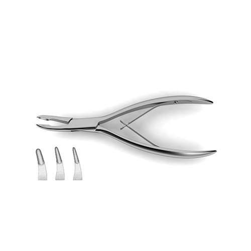 Reiner Rongeur can be used in many different surgical interventions that require cutting or clipping of bone. Although it is designed for use in orthopedic procedures to repair injuries to bone and cartilage it has wider applications in any surgery that require increased access through bone or manipulation of bone for smooth closure. A unique aspect of this instrument is that the jaws can be interchanged among three different sizes: 3.0 mm, 4.0 mm and 6.0 mm bite making it well suited for a variety of surgeon preferences and patient needs.