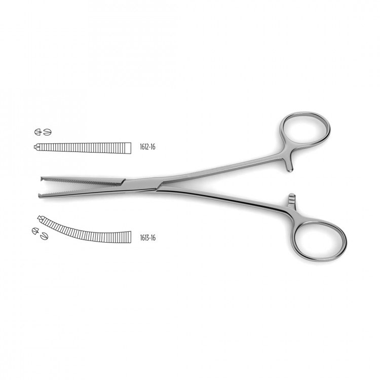 Rochester-Ochsner Forceps are hemostats that are helpful for clamping off blood vessels to avoid bleeding during procedures such as orthopedic surgery. In order to clamp vessels or grasp tissue, these forceps have 1×2 teeth on the tip of the serrated jaws. This “rat-tooth” can be described as one point on one end of the jaw that suits amongst two teeth on the end of the other jaw. These teeth can be functional for gripping dense tissue. Different lengths of these ring-handled forceps are presented to assist numerous cases.