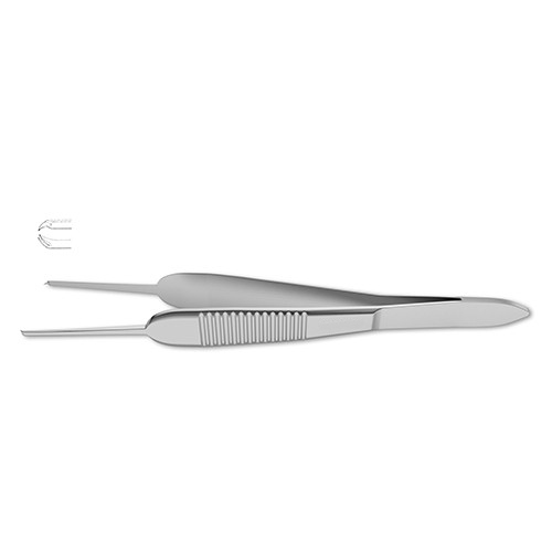 bayonet-shaped, cross-serrated, 3" (7.5 cm)Â Botvin Iris Forceps are a useful tool in ophthalmologic procedures involving repair of the iris following trauma. The forceps are designed to handle the long needle necessary for iris suturing, commonly used with 10-0 polypropelene or 4-0 silk sutures. The bayonet style design is meant to minimize surgical obstruction during the operation.