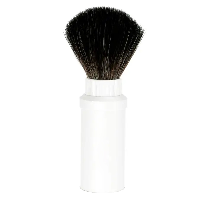 Black Travel Shaving Brush Black color metal finish Black synthetic fill Lightweight & small size, fits in a wash bag