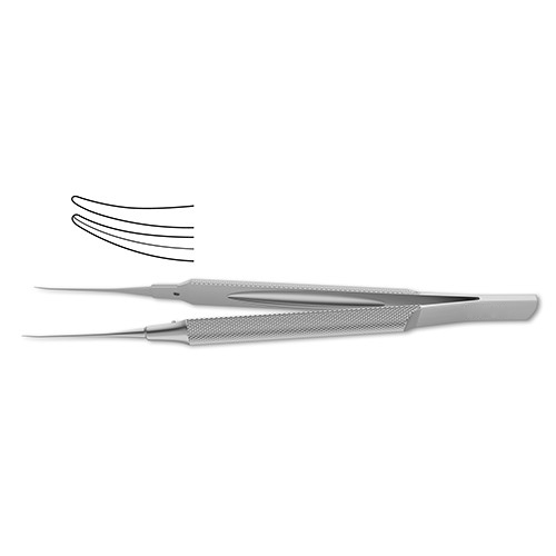 wide handle, bayonet shape, 6.0 mm tying platform, 0.3 mm teeth, 4-1/8" (10.5 cm)Â Castroviejo Suturing Forceps are a multipurpose tool for a variety of ophthalmologic procedures. The delicate teeth are designed for the handling of fine tissue, such as corneal tissue during a keratoplasty. The forceps are available with a tying platform, designed to grasp both the tissue and suturing equipment without changing instruments. The bayonet style is ideal for difficult to reach areas and minimizes surgical obstruction during the procedure.