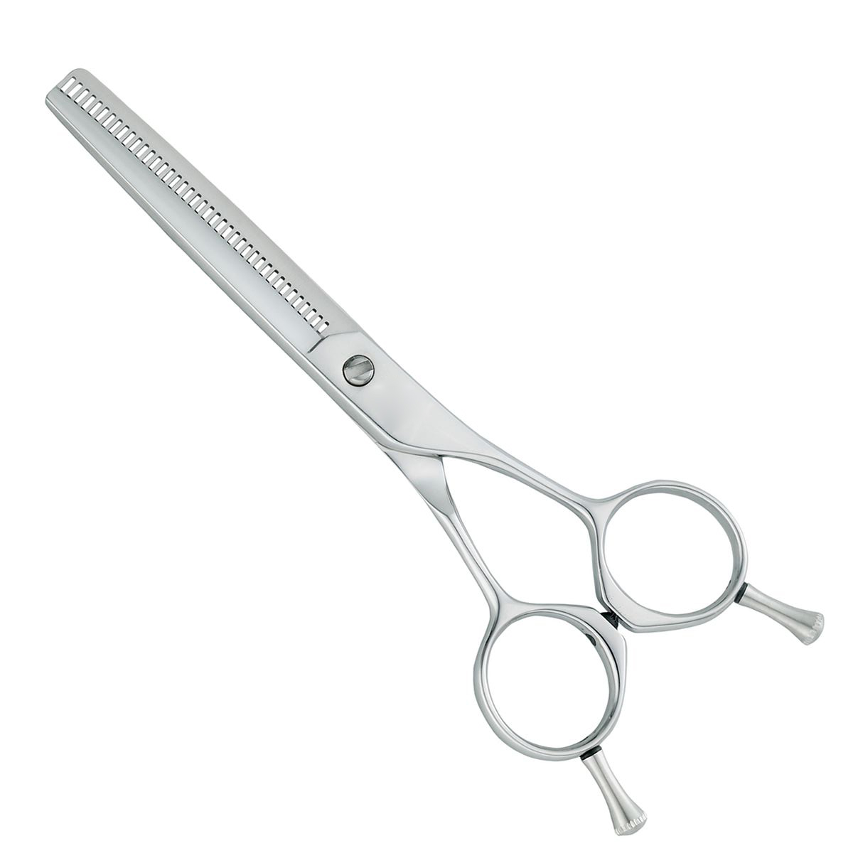 With a light weight and smooth action, the satin finished handles and 40-tooth thinning blades really give this scissor an exceptional feel. They feature a thumb rest that can be removed and switched to either handle. The GBI E40 features thinning blades which are ideal for everyday use, making these scissors a real essential for great stylists.