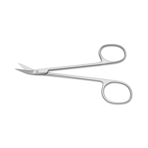 sharp tips, curved Westcott Stich Scissors are a particularly useful tool in posteroperative management of ophthalmologic procedures. The curved sharp blade is designed to remove stitches from the conjunctiva or eyelids following an incision. The extended length model is useful for accessing difficult areas while causing minimal surgical obstruction. A wide handle model is available on the scissors depending on surgical preference.