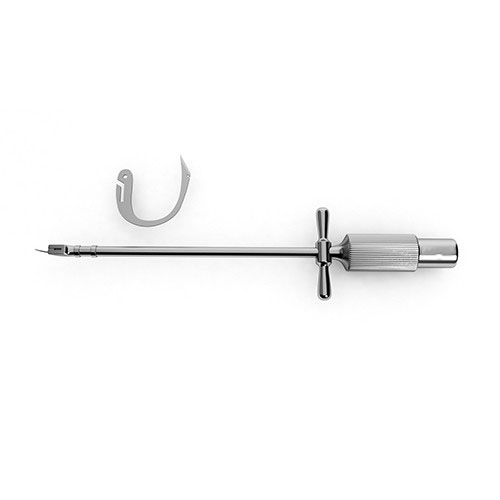 Young Boomerang Needle Holder features a spring mechanism in the handle and allows for attachment of different sized needles for suturing. Needles are available in small, medium, and large to accommodate a range of cases. Made with premium grade German stainless steel.
